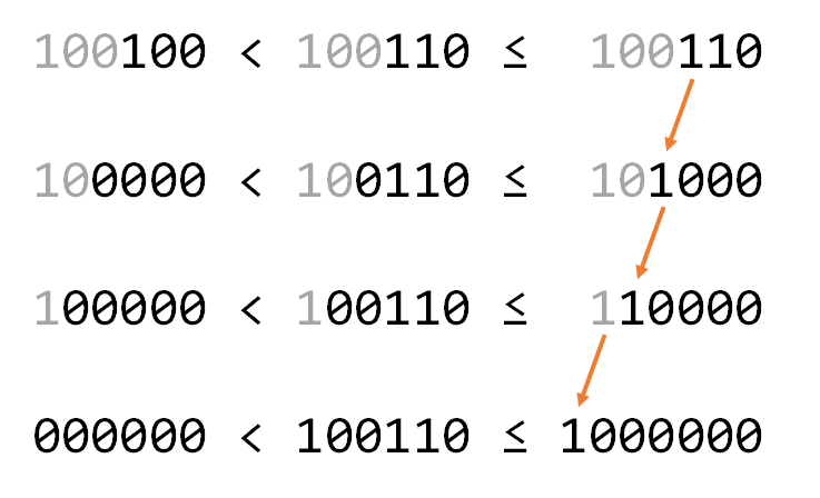 的和再相加。这三个区间怎么来的呢?其实就是不断地去掉二进制数最右边的一个1的过程(如下图)。